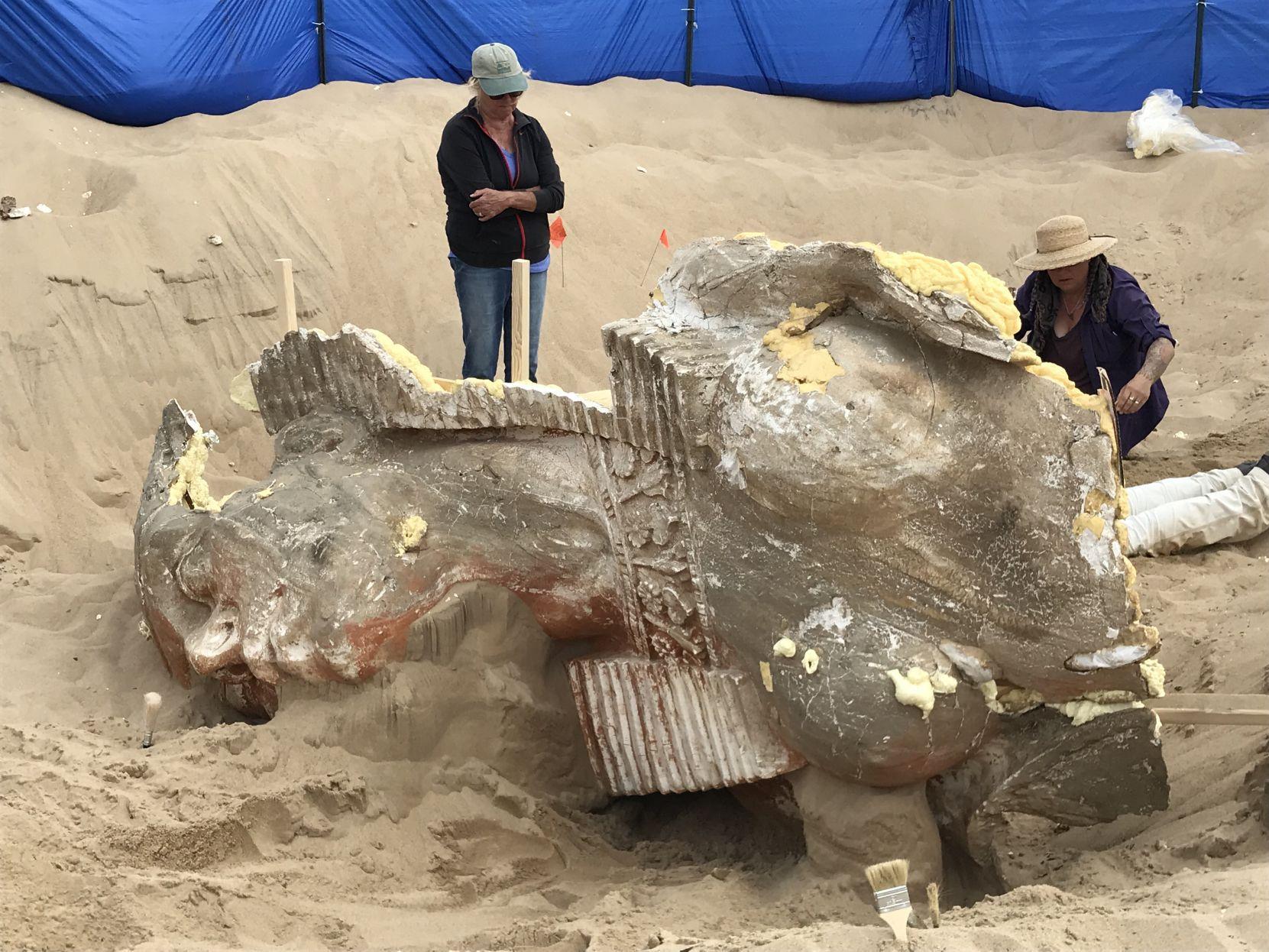 The “lost city” remained a mystery for almost 100 years until a filmmaker in the 1980s started digging, figuratively and literally. Some early artifacts were found and gave clues that maybe the set was indeed buried in the sand. (That decades-long journey is told in the documentary “The Lost City of Cecil B DeMille.”) And in 2017, a big moment: a 6-foot-tall sphinx head weighing hundreds of pounds and in great condition was unearthed.